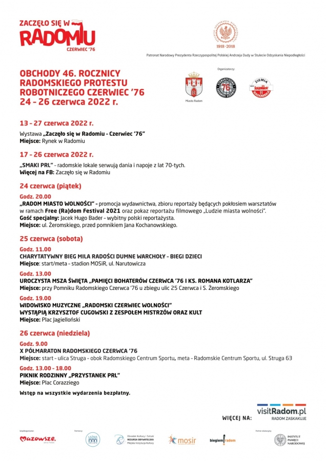 46 Rocznica Radomskiego Protestu - program innych wydarzeń46 Rocznica Radomskiego Protestu - program innych wydarzeń
